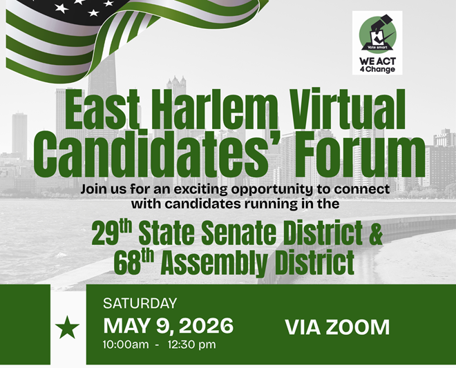 The goal of WE ACT 4 Change is to build and leverage political power in our fight to achieve environmental and climate justice for communities in Northern Manhattan. We will use it to engage in voter and civic engagement activities as well as ranking and endorsing political candidates. We will also use it to lobby for policies and programs as well as hold elected officials accountable.